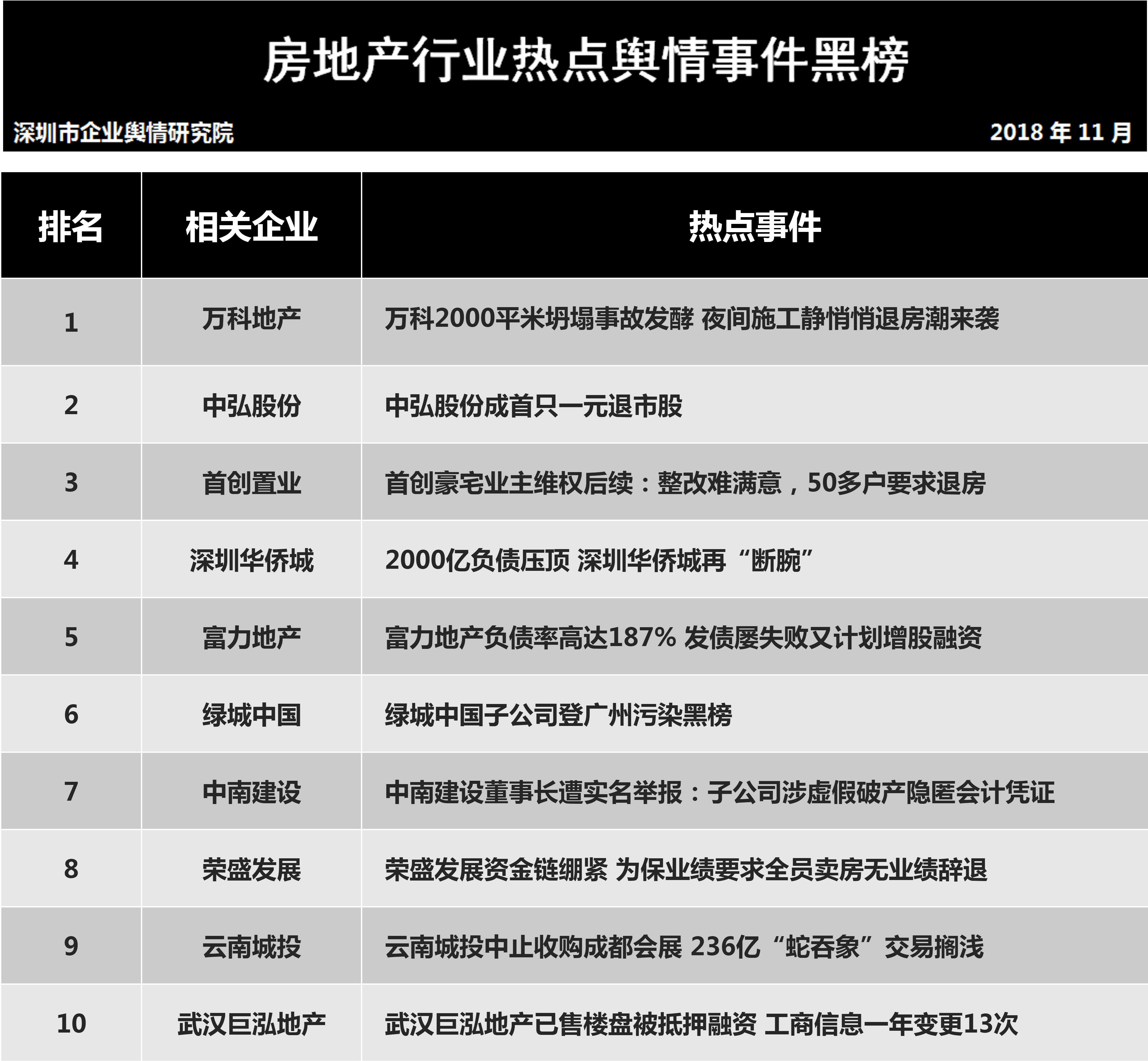 1月7日,深圳企業(yè)輿情研究院發(fā)布第十一批企業(yè)輿情榜單。本次榜單重點(diǎn)聚焦房地產(chǎn)及醫(yī)藥保健兩個(gè)行業(yè)。