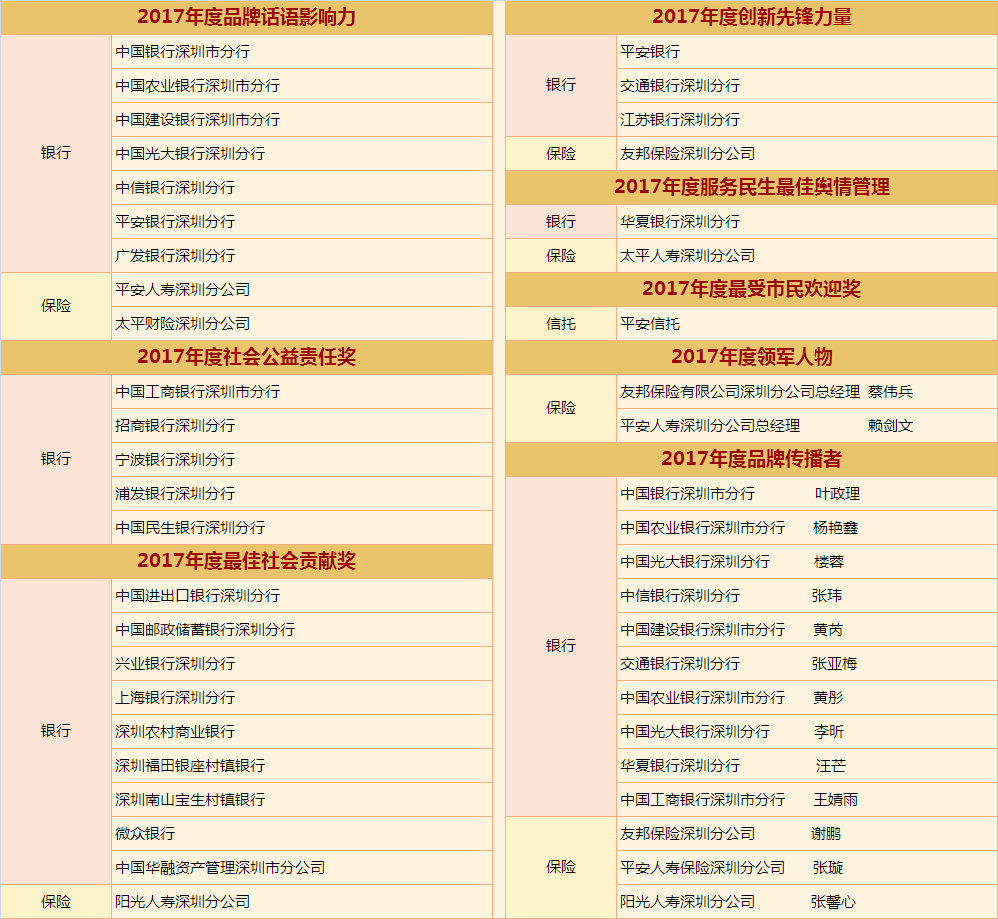 2017年,深圳金融實現(xiàn)快速發(fā)展。為了讓金融真正回歸服務實體經(jīng)濟的本源,真正脫虛向?qū)?,深圳新聞網(wǎng)將聯(lián)手行業(yè)權(quán)威協(xié)會、第三方機構(gòu)、媒體,以“新時代·新服務·新金融”為主題,以深圳金融機構(gòu)如何回歸本原、改革創(chuàng)新、服務實體經(jīng)濟為核心,從“品牌話語影響力”、“創(chuàng)新先鋒力量”、“輿情管理 服務民生”三個角度出發(fā),邀請眾多金融機構(gòu)共同發(fā)力,自覺加入金融回歸服務實體經(jīng)濟本源這一滾滾時代洪流中來。作為一個金融公民,我們也盡一份該盡的社會責任,為市民遴選最能代表深圳本地實力及形象的金融機構(gòu),同時頒發(fā)重磅大獎:“金桐獎——年度品牌話語影響力”、“金桐獎——年度創(chuàng)新先鋒力量”、“金桐獎——服務民生最佳輿情管理”。