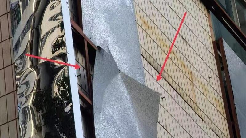 松泉山莊外墻鐵皮松脫存隱患,已督促責任人拆除